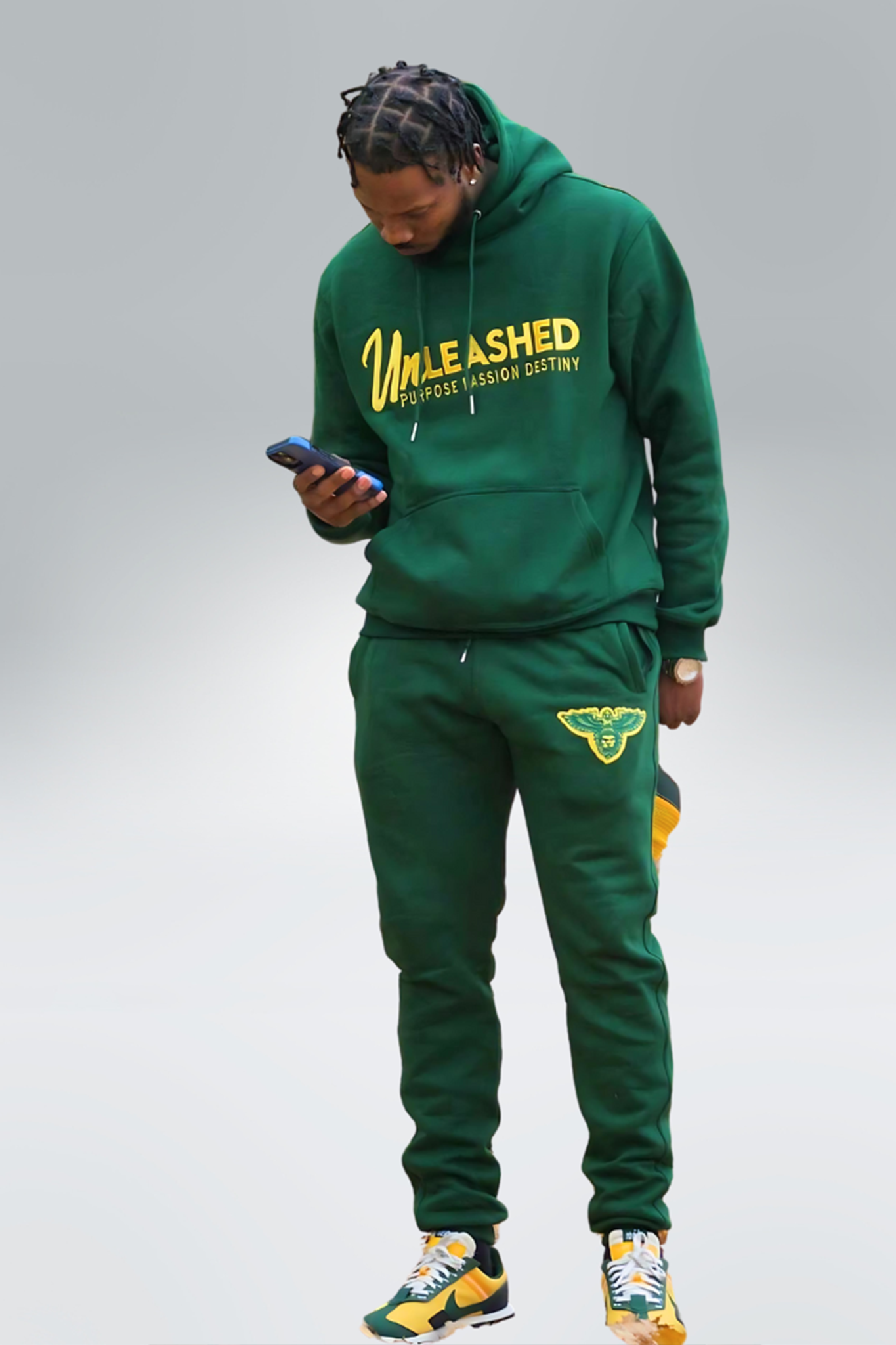 Unleashed "Midnight Luxe Genuine" Leather hooded jogging suit