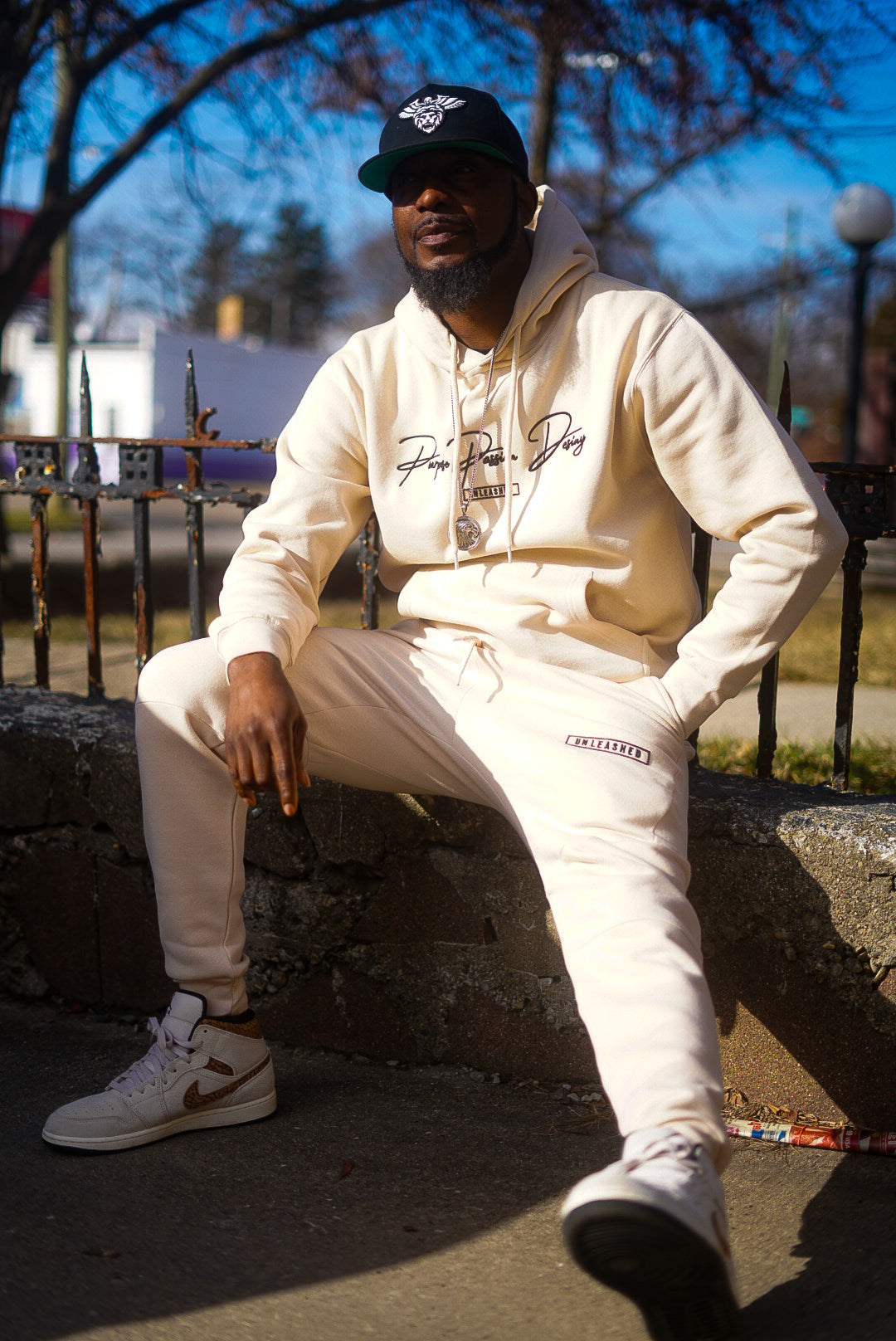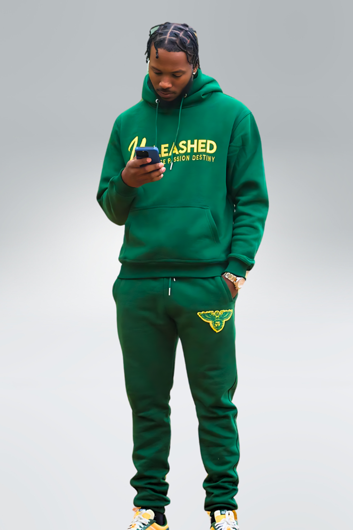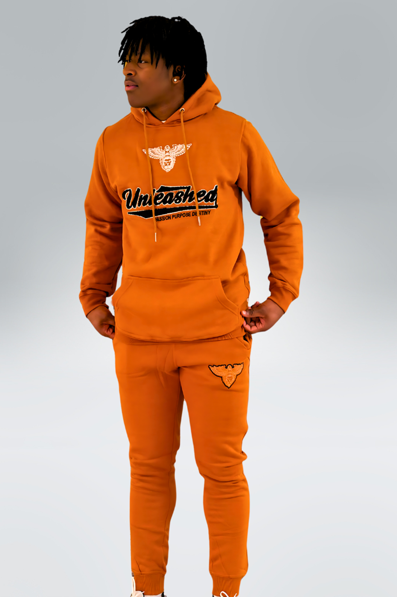 Unleashed "Midnight Luxe Genuine" Leather hooded jogging suit